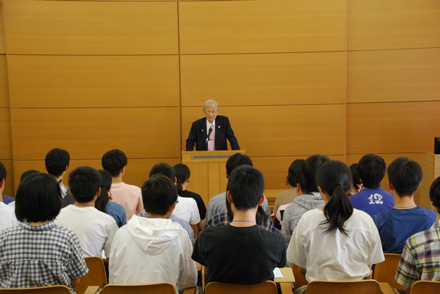 閉講の辞では、松本紘先生(国際高等研究所所長)から、「学びのあり方に関して、青年時代は知識を吸収する時期であり、貪欲に知識を求めてほしい。それらが何時の日か総合知として結晶する時がある。視野を広く持ち、多様な分野に関心を寄せてほしい」との言葉があり、受講生の今後の人生への期待が語られました。